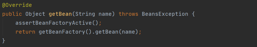 首先入口选择了applicationContext.getBean(name)这个api,点进入可以看到如下,其中参数就是一个String类型