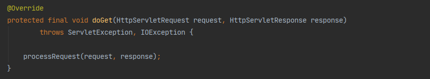 判断后调用FrameworkServlet的doGat方法,在这个方法中只有一句话