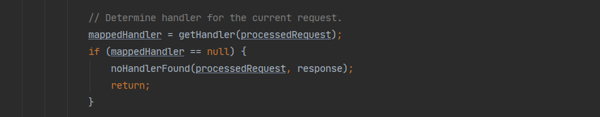 代码继续往下走,这里可以看到如果没有拿到对应的处理器,则这个请求开始返回404